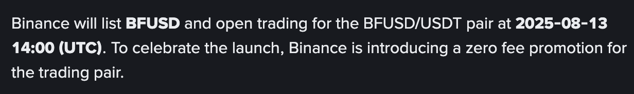- Binance anuncia comercio sin comisiones para el nuevo altcoin BFUSD con BFUSD/$USDT.
