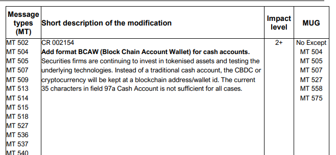En la práctica, esto significa que una transacción internacional podrá señalar directamente un monedero «blockchain» como cuenta de origen o destino, algo que antes no era posible.