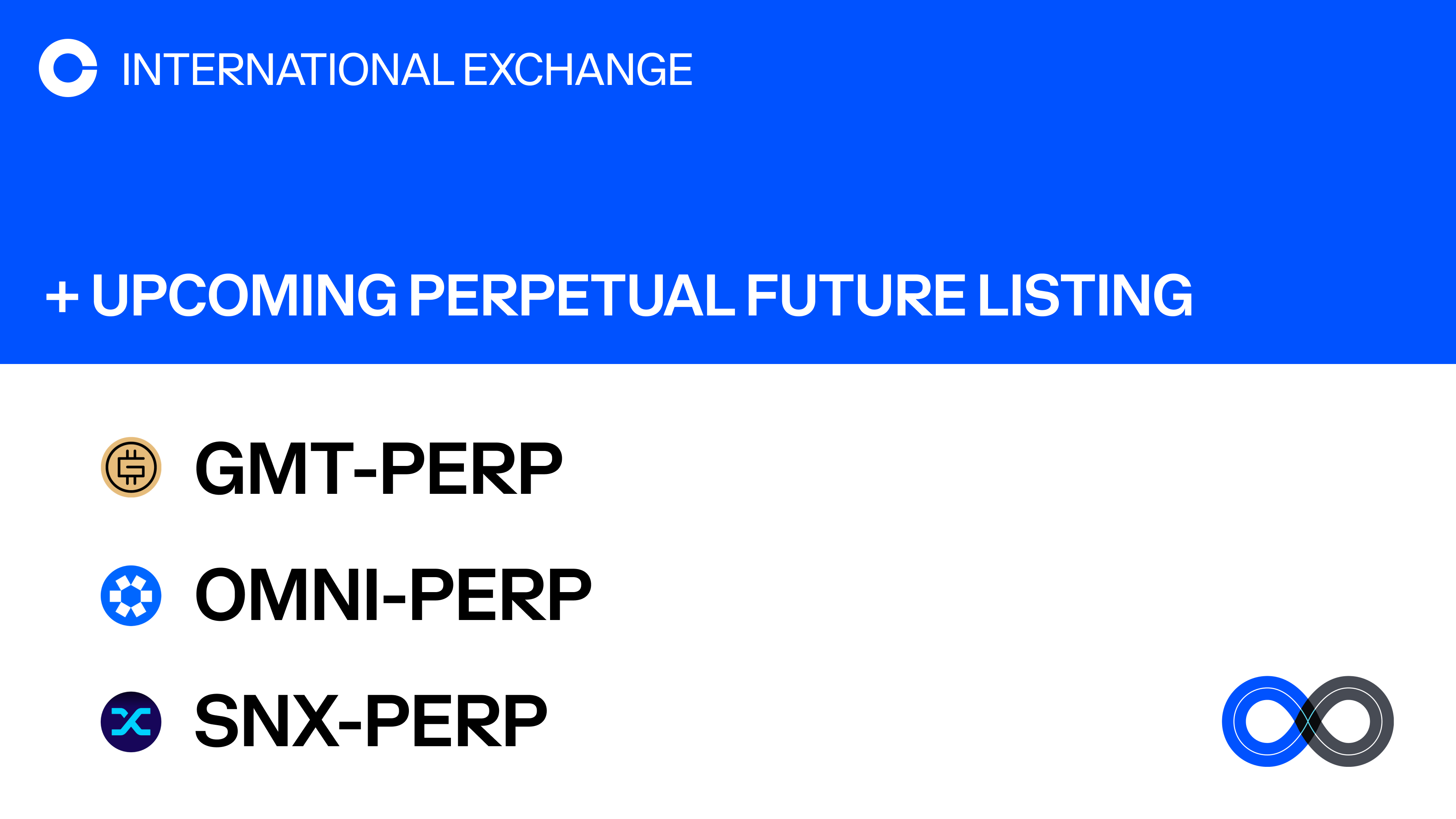 Según un anuncio de la plataforma oficial de Coinbase Global Exchange, tres nuevos pares perpetuos—GMT-PERP, OMNI-PERP y SNX-PERP—se activarán el 28 de hacesto. Se espera que este soporte para GMT, Omni Network y Synthetix aumente la liquidez para estas altcoins en los mercados de futuros.