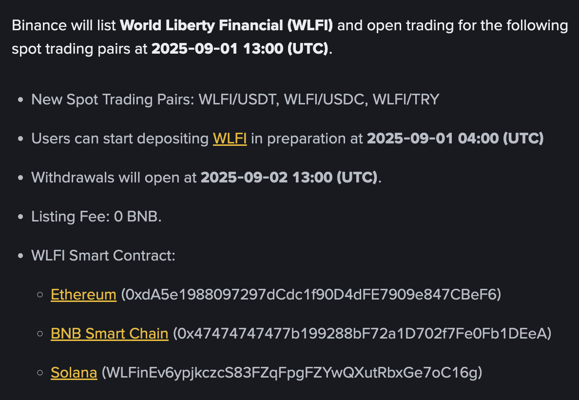 - WLFI estará disponible en pares de comercio como WLFI/USDT.