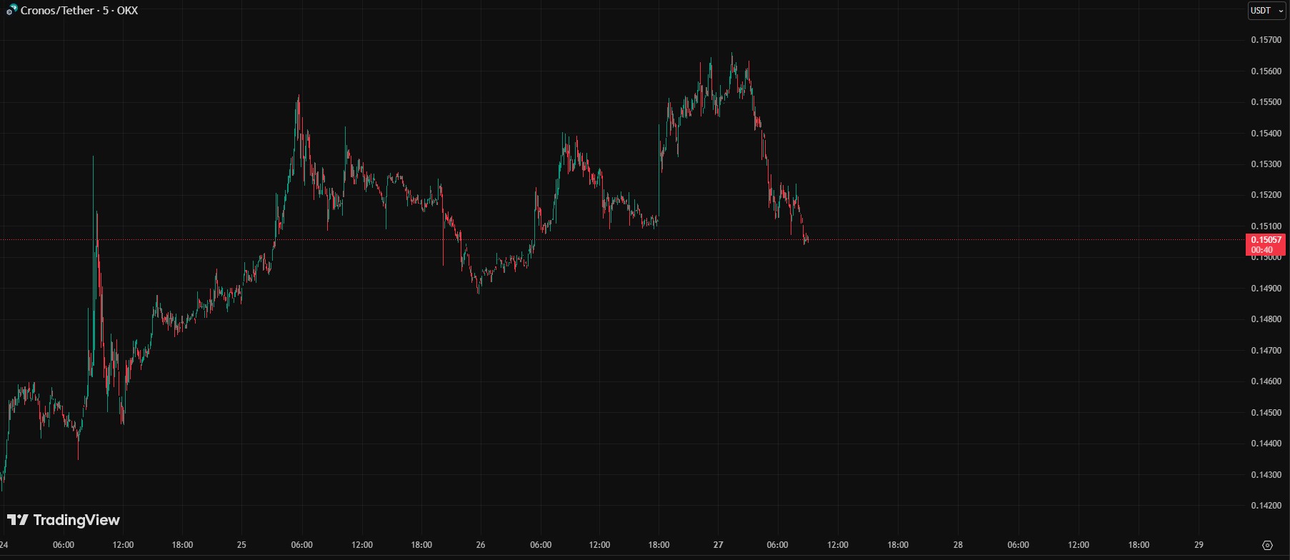 Tras la noticia, el token CRO, creado por esa plataforma de intercambio de criptomonedas, tuvo una reacción alcista. Subió casi 5% el día del anuncio, que fue el viernes 24 de octubre. Desde entonces, el activo llegó a aumentar en casi 10%, como se ve en la siguiente gráfica:
