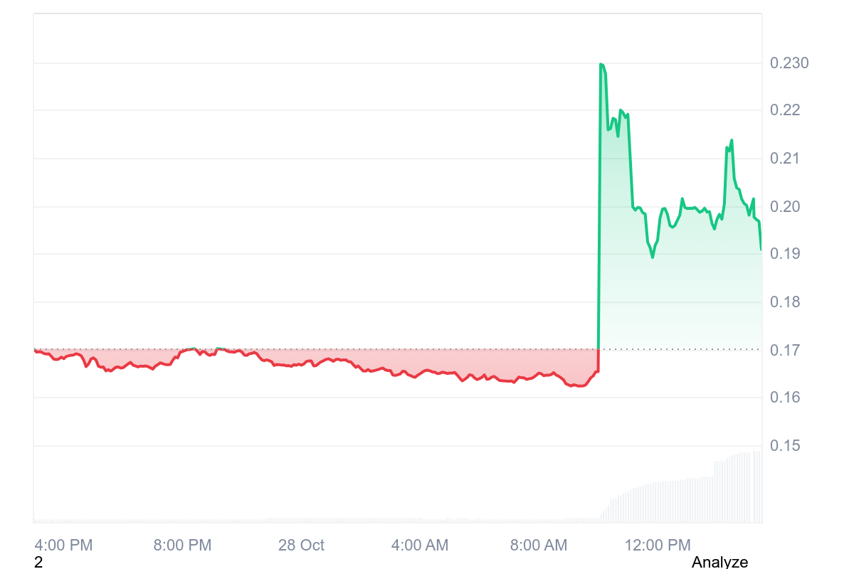 La cotización encendió una presión de compra inmediata, con el volumen diario de KernelDAO aumentando a medida que los alcistas impulsaron a KERNEL desde mínimos de 0.16 dólares a un máximo intradiario de 0.23 dólares al momento de escribir este artículo.