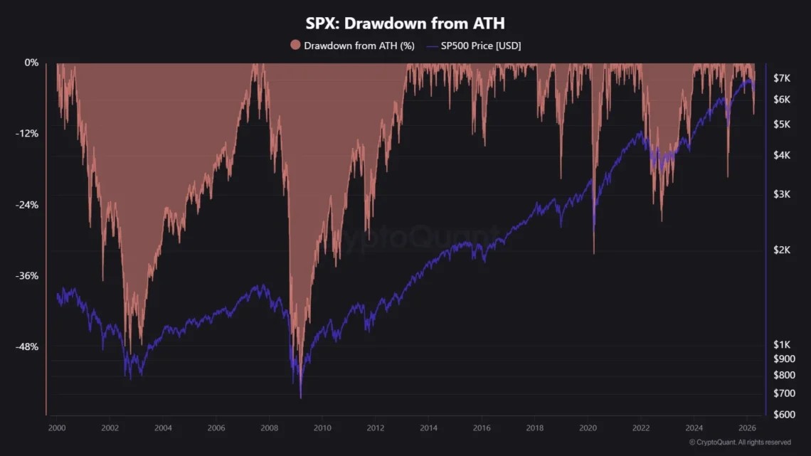 Por último, en analista comparte un gráfico que aporta contexto macroeconómico: el rendimiento del S&P 500 (SPX) y sus caídas desde máximos históricos. Su importancia radica en que muestra cómo la volatilidad en el principal índice bursátil de Estados Unidos también se convirtió en una oportunidad operativa para los traders de Binance Futures, reforzando el giro hacia activos TradFi dentro de la plataforma.
