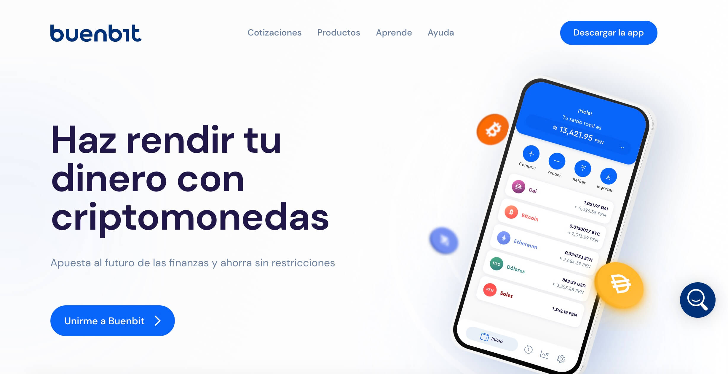 Buenbit es una plataforma enfocada en la compra y venta de criptomonedas en Argentina, por lo que permite depósitos con pesos argentinos. Además, entre sus beneficios está el holding con hasta 11% de rendimiento, bajas comisiones, la posibilidad de registrar una tarjeta de débito fondeada con cripto, y servicio para préstamos con Bitcoin.