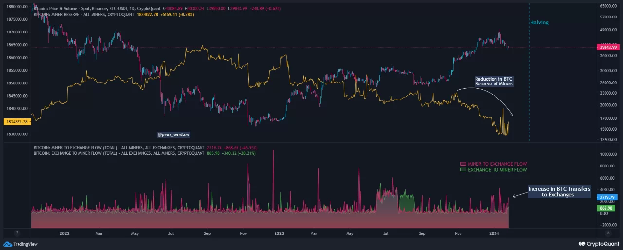 A medida que se acerca el tan esperado halving, se están produciendo transformaciones notables. Los datos recientes apuntan a una caída significativa en las reservas de BTC en poder de los mineros, junto con un fuerte aumento en las transferencias de BTC a los intercambios.