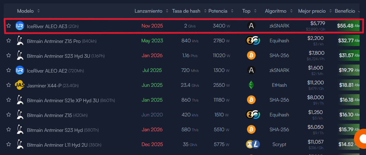 Conforme al sitio especializado consultado, entre las criptomonedas más rentables para minar, no hay otra que cuente con ASIC diseñados para procesar pruebas zkSNARK, como ocurre con Aleo. Whattomine respalda esa información.