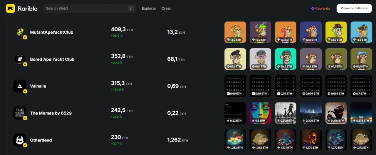 Según los datos de DappRadar, Opensea es el mayor mercado Web3 del mundo para los tokens NFTs por volumen de operaciones. Hasta la fecha, ha procesado más de $33.040 millones con sus ventas. Dentro de este mercado existen diferentes colecciones de NFT dedicadas al arte, la música, los videojuegos, los deportes, los cromos, los metaversos, la fotografía y más.