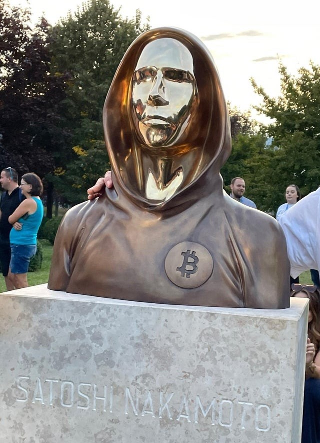 “Si miras de cerca, puedes ver tu propio reflejo en la cara de la estatua, ¡lo que significa que todos somos Satoshi!”.