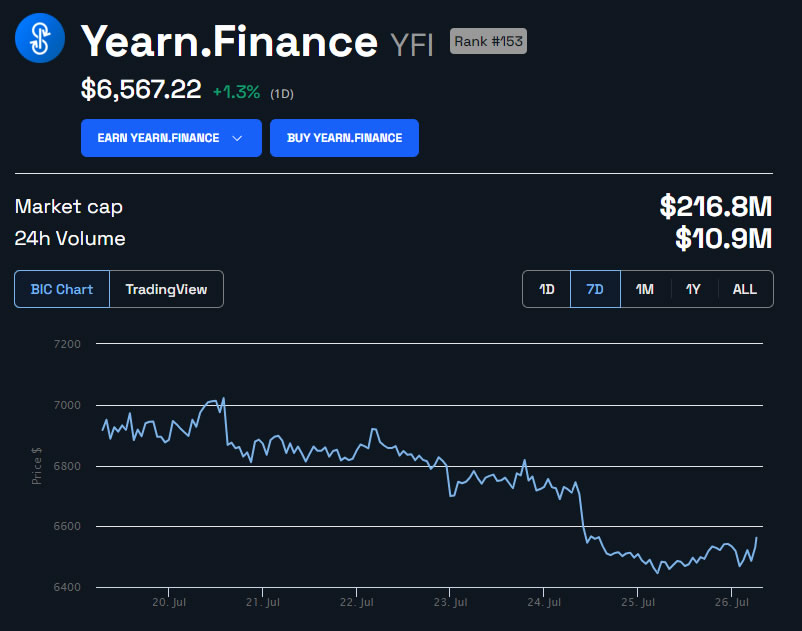 Yearn Finance tiene una capitalización de mercado de 216 millones de dólares con solo 33,000 tokens en circulación.