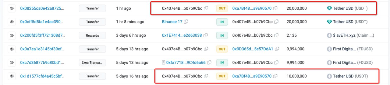 Según una actualización de la empresa de análisis on.chain; PeckShield, un estafador de transferencia cero se apoderó de 20 millones de USDT de la dirección de la víctima 0x4071...9Cbc. La dirección a la que la víctima planeaba enviar el dinero era 0xa7B4BAC8f0f9692e56750aEFB5f6cB5516E90570; sin embargo, en su lugar se envió a una dirección de phishing: 0xa7Bf48749D2E4aA29e3209879956b9bAa9E90570.