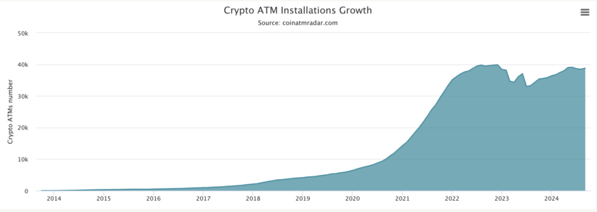 Actualmente, hay 38,811 cajeros de criptomonedas en todo el mundo, y su instalación se ha estancado, ya que su punto más alto fue a finales de 2022, cuando había instalados 39,890 ATM en el mundo. Los países con más cajeros cripto instalados son: Estados Unidos (32,243), Canadá (3,099), Australia (1,175), España (296), Polonia y El Salvador, con 281 y 215, respectivamente.