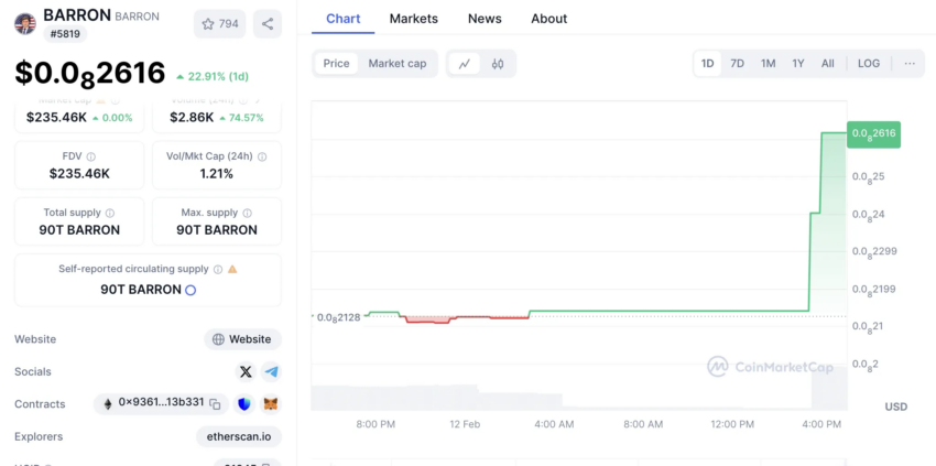 No hace falta decir que la memecoin no tenía absolutamente nada que ver con el hijo del presidente, Barron Trump. Sin embargo, su hija también tuvo que negar toda asociación con una memecoin IVANKA, pero esa estafa aún resultó rentable. Después de que los moderadores eliminaron la publicación y Witkoff advirtió a los inversores, el precio del activo ni siquiera cayó desde su pico. BARRON y otras falsas memecoins de la familia Trump son solo la punta del iceberg.