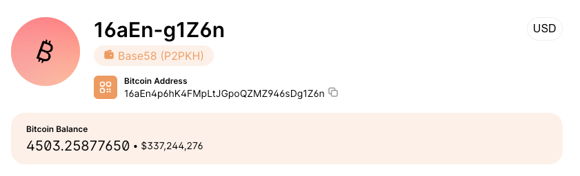 La dirección citada por el CEO contiene 4.503 Bitcoin ($BTC) actualmente valorados en alrededor de USD 334 millones, con la última transacción registrada en noviembre de 2025 al momento de la publicación.