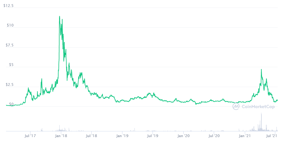 With the current market cap of $87.8 million, Komodo’s native KMD token is trading at $0.69 during press time. Its ATH price occurred on December 22, 2017, at $11.44.