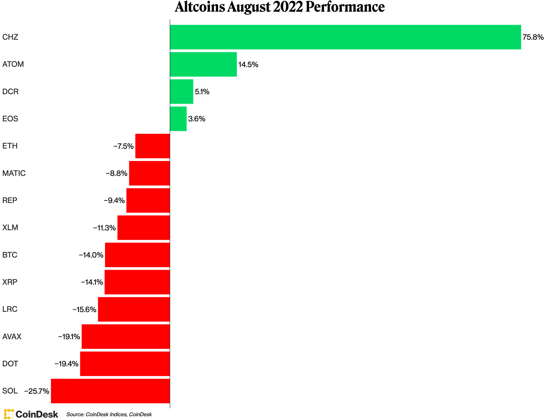 Bitcoin, the largest cryptocurrency by market capitalization, sank about 13% for the month, and ether fell about 20%. Yet, data shows that not all cryptocurrencies performed poorly largely because of positive news events involving them. The price increases in a bear market underscore the independence of individual projects to evolve and engage investors with important changes.