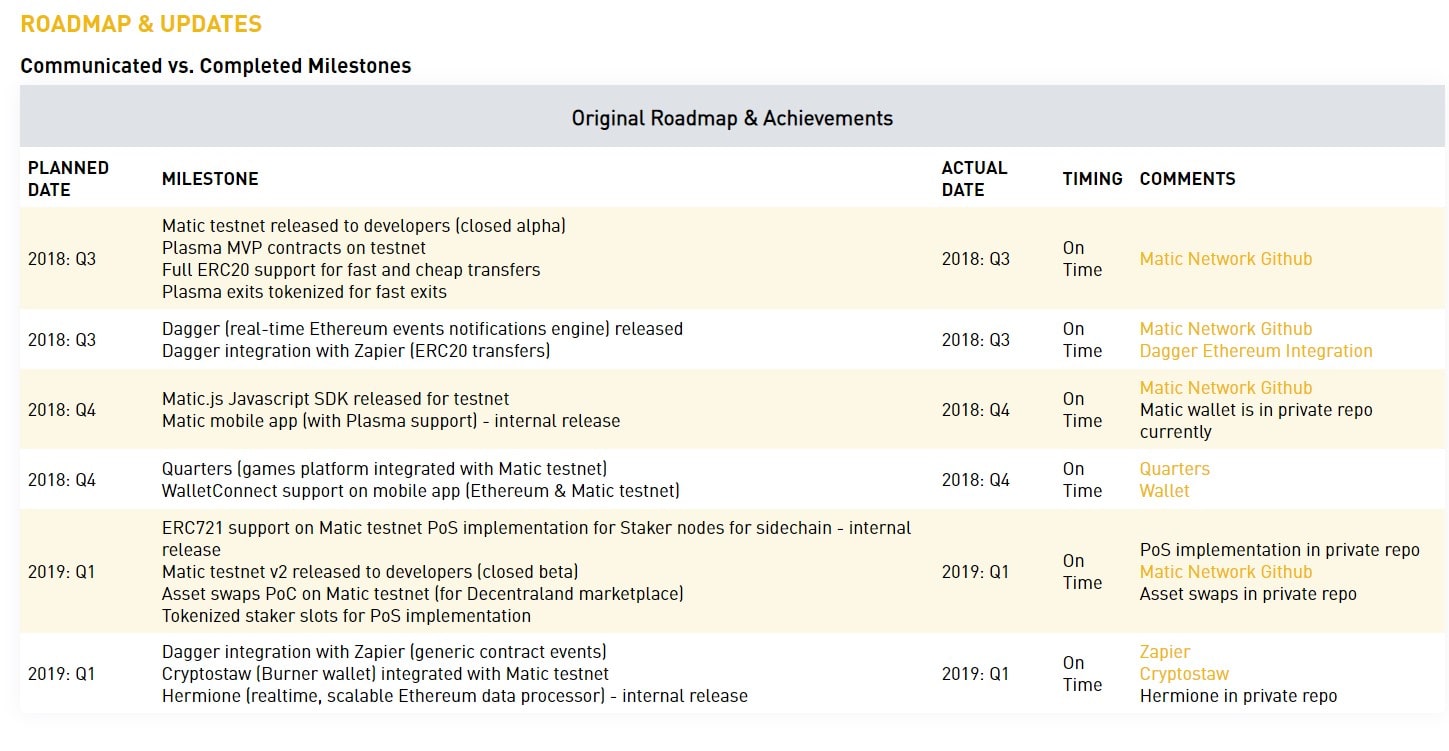 Matic has achieved substantial progress with its roadmap: