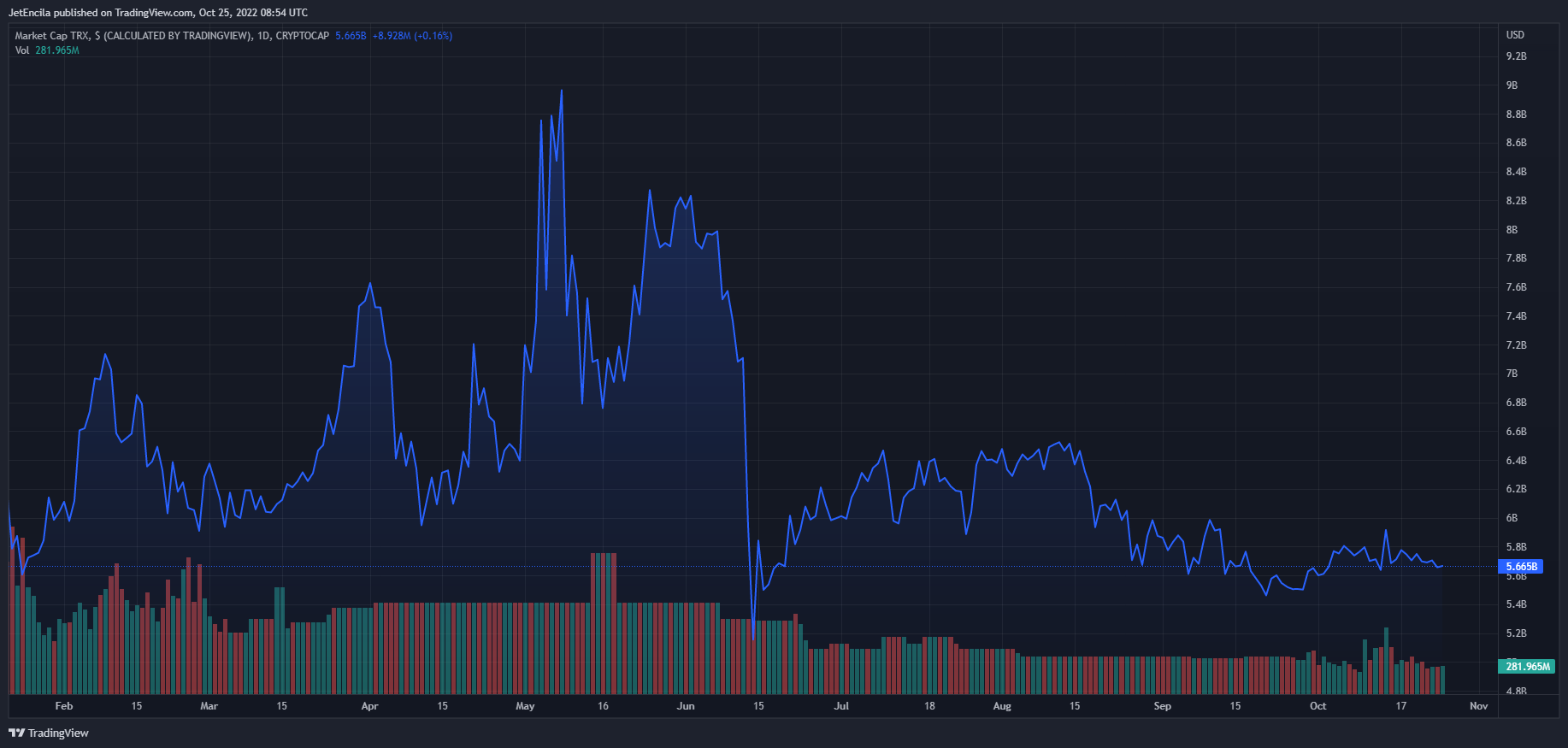 TRX total market cap at $5.6 billion on the daily chart | Featured image from Inside the Magic, Chart: TradingView.com Disclaimer: The analysis represents the author's personal views and should not be construed as investment advice.