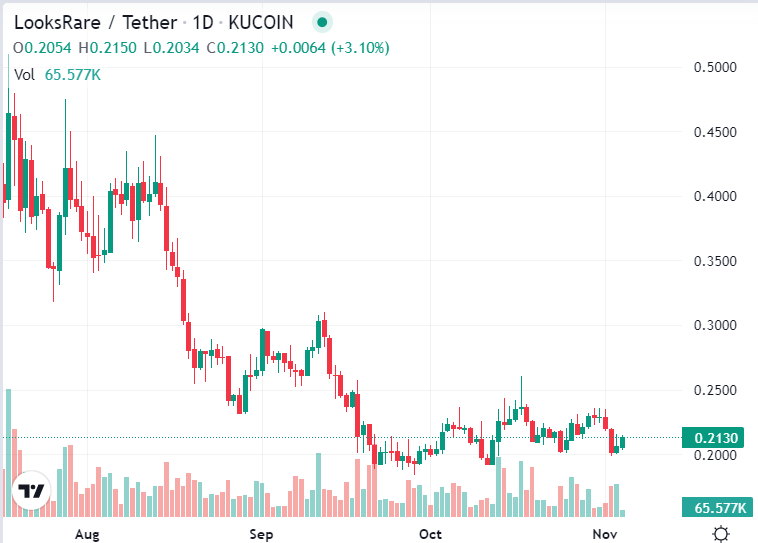 LOOKS is currently worth about $0.2137 after a 0.17% increase in price over the last day. The crypto is, however, down 0.13% over the last week. The crypto’s 24 hour trading volume is also in the red by more than 60%, and now stands at $1,276,972,970.