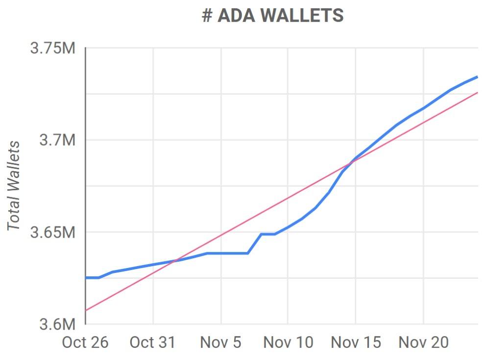 According to data from Cardano Blockchain Insights, the number of Cardano wallets has recently grown by over 100,000, going from around 3.633 million at the beginning of the month, to over 3.73 million at the time of writing.