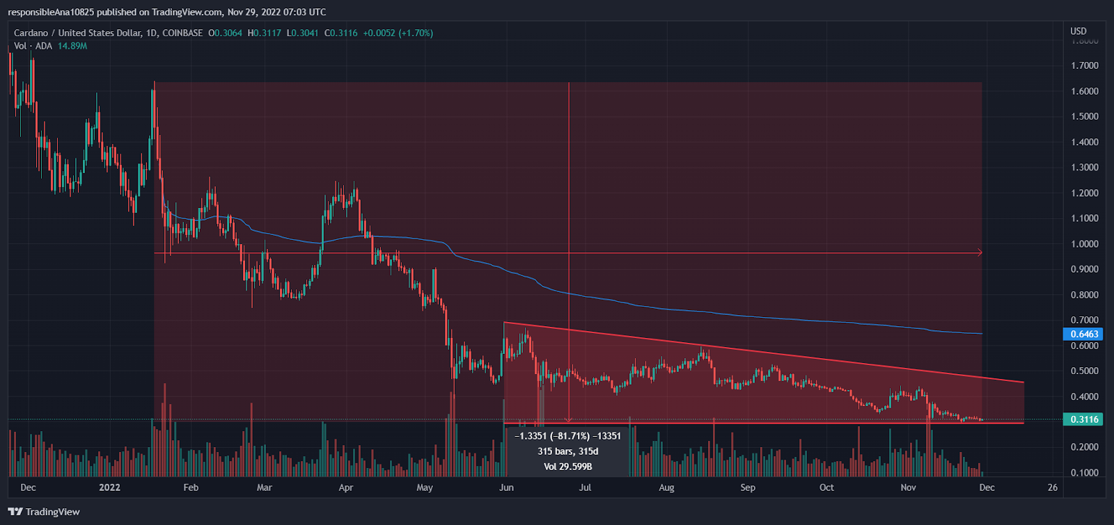 ADA has created a bear trend throughout the year. Currently, the asset was trading at a market price of $0.31, a 1.7% increase in the past 24 hours. The digital asset managed to stay above $1 during the first quarter this year. It saw some massive sell-off during January 2022 which led the price to fall below a buck.