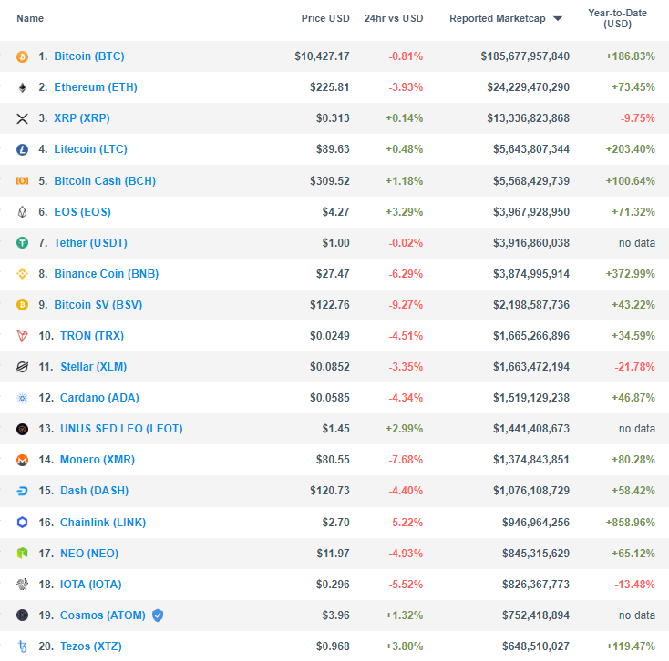 Top-20 Cryptocurrencies: