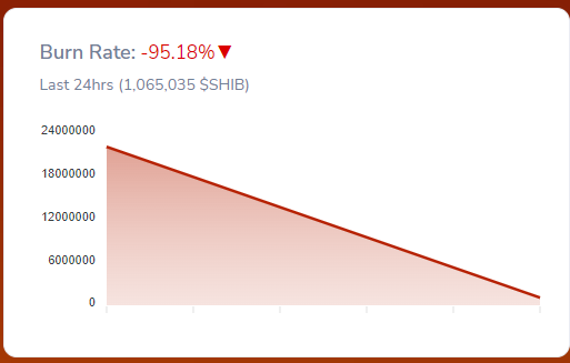 According to the SHIBBURN website, the burn rate of the Shiba Inu token descended by 95.18% in the last 24 hours and burned 1,065,035 SHIB tokens.