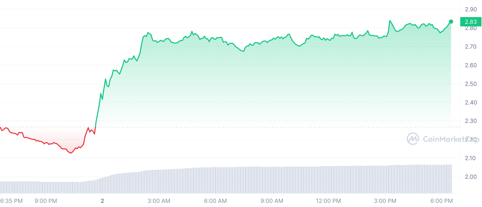 The OP price has risen 30% in the last 24 hours, reaching values close to its absolute highs of $3, which have not been seen since the token's airdrop in late spring of last year. OP is the native token of Optimism, a Layer 2 blockchain on top of Ethereum and one of the leaders in all key metrics among such protocols.