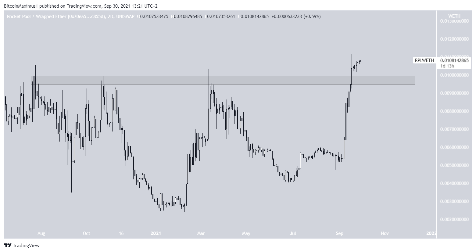 The RPL/ETH pair has just broken out above the 0.01 ETH resistance area.