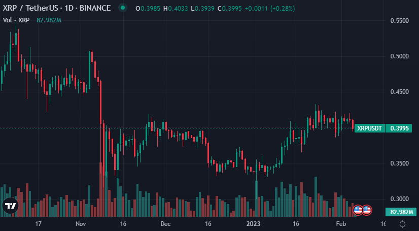 CoinMarketCap indicates that XRP is currently trading hands at $0.3993 after a 2.67% drop in price over the last 24 hours. The crypto is also in the red by more than 3% over the last week.