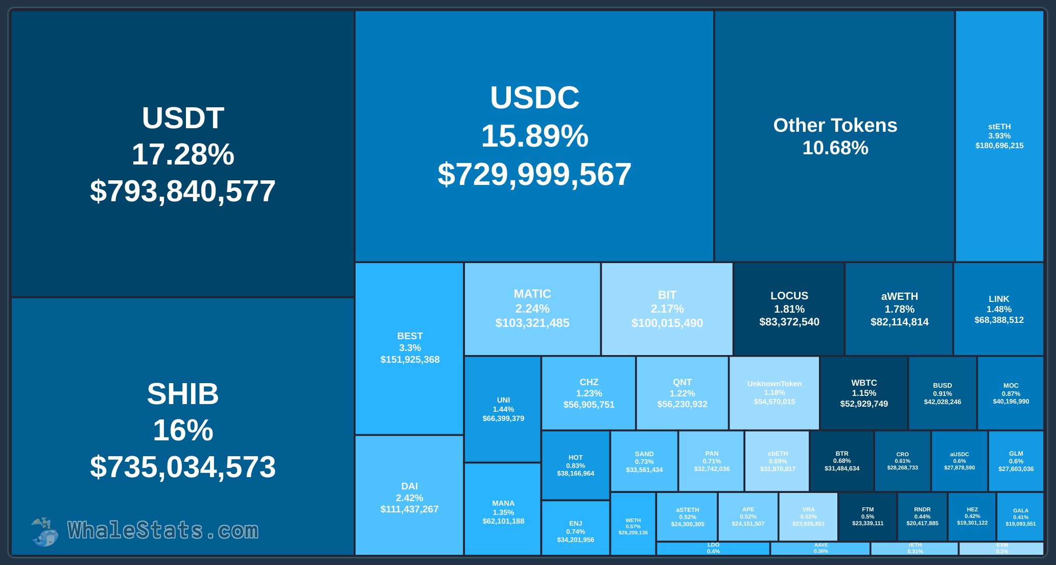 This makes SHIB the second-largest altcoin holding among Ethereum whales, right behind the stablecoin Tether (USDT).