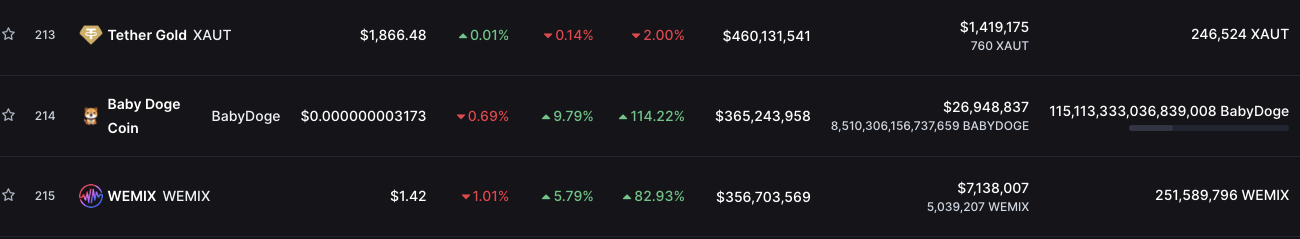 Although this growth has since stabilized, Baby Doge Coin has still outperformed other dog-themed cryptocurrencies, such as Shiba Inu (SHIB), Dogecoin (DOGE), and BoneShibaSwap (BONE) in terms of weekly gains, rising by 114% over the last seven days.