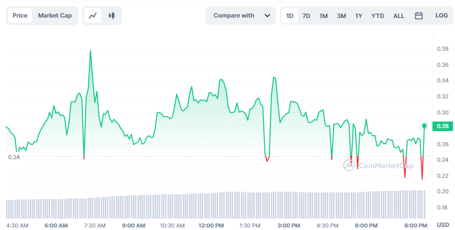 The Realio Network coin, or RIO, has seen greater price fluctuation than most other cryptocurrencies. The cryptocurrency has increased by over 22% today, trading at $0.285 as of press time.