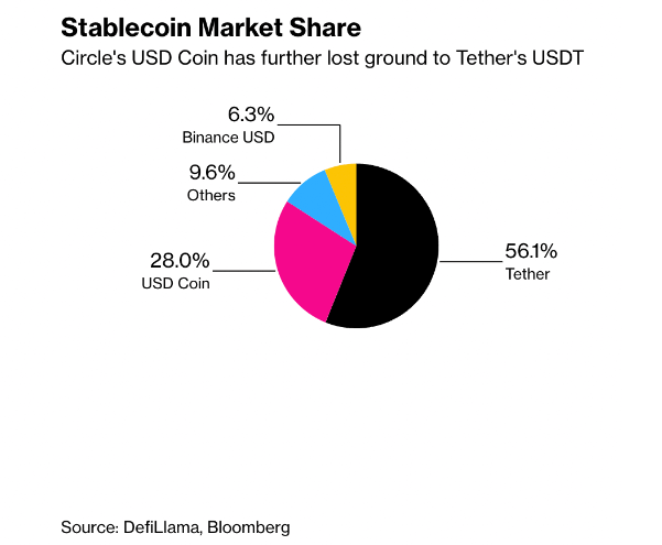 Although USDC has managed to restore its peg, it has lost ground to its rival stablecoin USDT following last week’s turmoil. A Bloomberg report indicates that USDC’s circulating supply has decreased by 5.9 billion tokens, while USDT has increased its supply by 2.5 billion tokens.