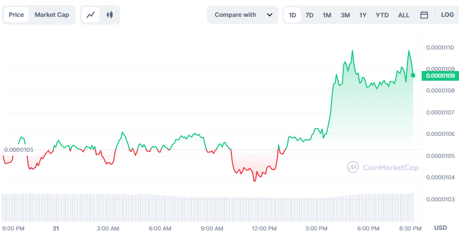 Meanwhile, SHIB recorded a 2.5% price increase within 24 hours. It is now far from what enthusiasts expect, at $0.0001. Shib’s trading volume has also seen a 5% increase within the same period demonstrating increased activity in the assets market.