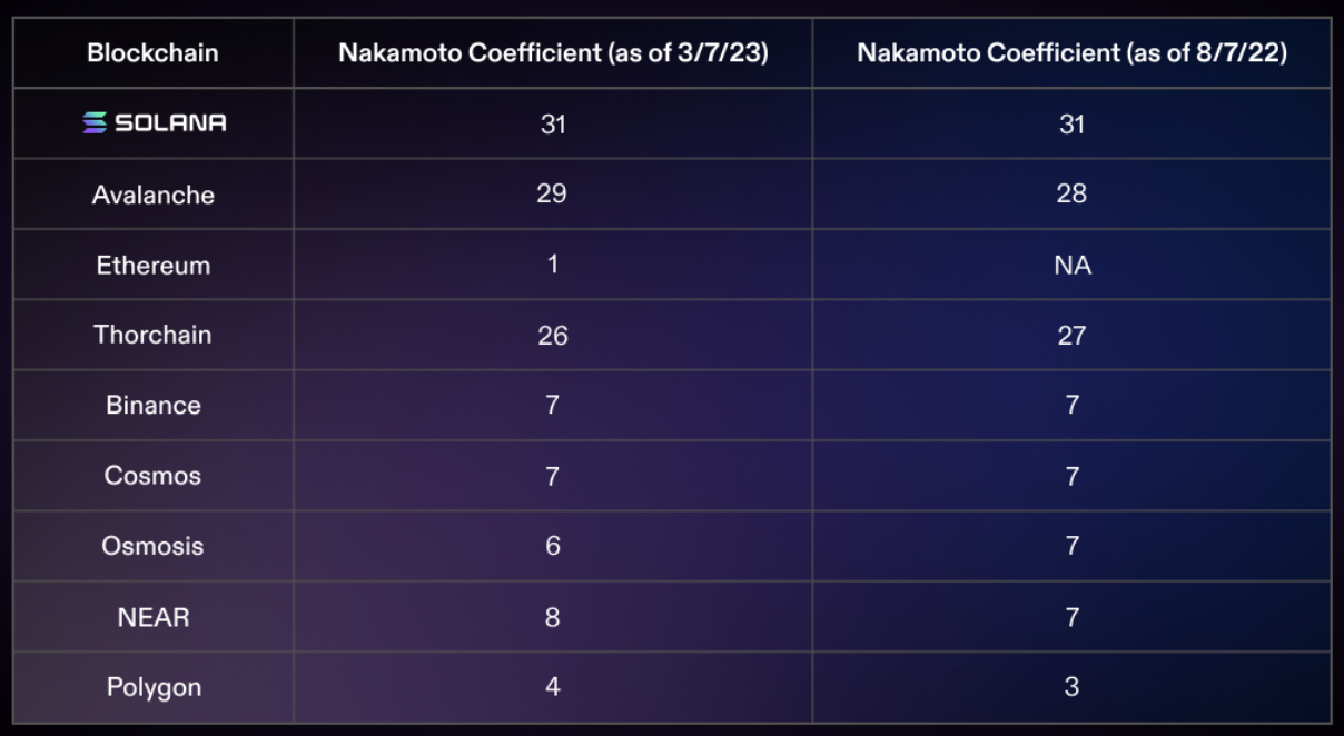 The Nakamoto Coefficient is widely considered to be a good way of measuring a blockchain’s resilience to attack. The following definition is taken from the report: