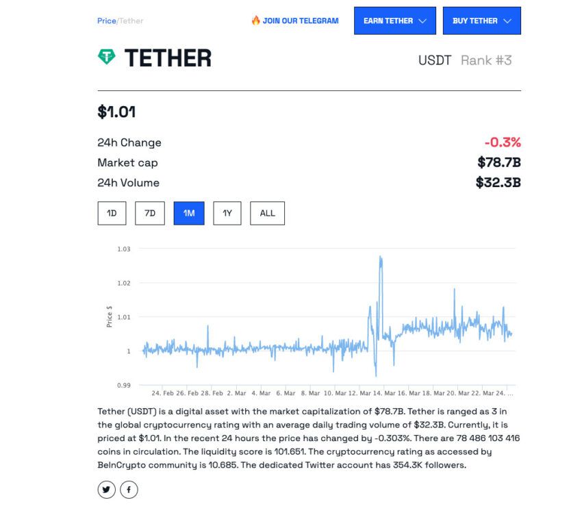 Tether is the largest stablecoin with a market cap of over $78 billion. It is pegged to the U.S. dollar 1:1. Stablecoins are designed to protect against price volatility. One of the major criticisms of cryptocurrencies is that their rollercoaster price action can detract less experienced investors from using them.