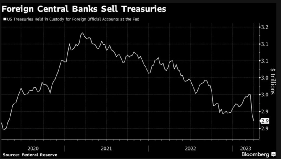 According to the recent report of the television media Bloomberg, the foreign central banks have been liquidating Treasury holdings, facilitating cash from the Federal Reserve to mitigate the banking turmoil.