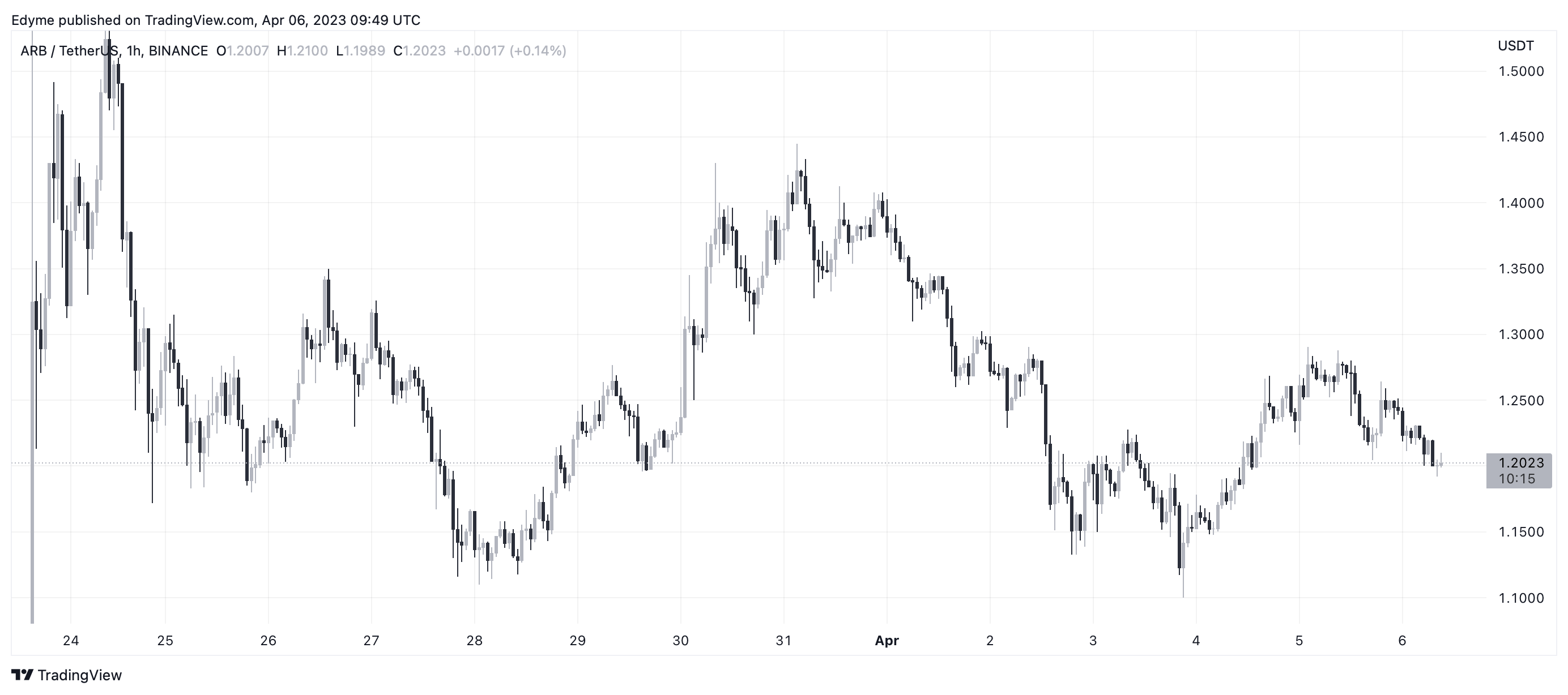 Over the past 24 hours, Arbitrum’s native token ARB has plummeted by over 5% after depreciating from its regained losses from the weekend saga as of yesterday. The asset has fallen from a high of $1.28 seen on April 5 to trading at $1.20, at the time of writing.