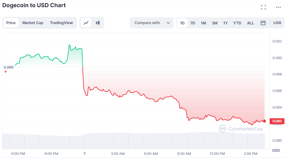 According to CoinGecko, the original “meme coin” was down 9% at the time of writing, trading for $0.086. Its value plummeted by as much as 6% in an hour Thursday afternoon Eastern Time, just after the Dogecoin logo vanished from Twitter’s platform.
