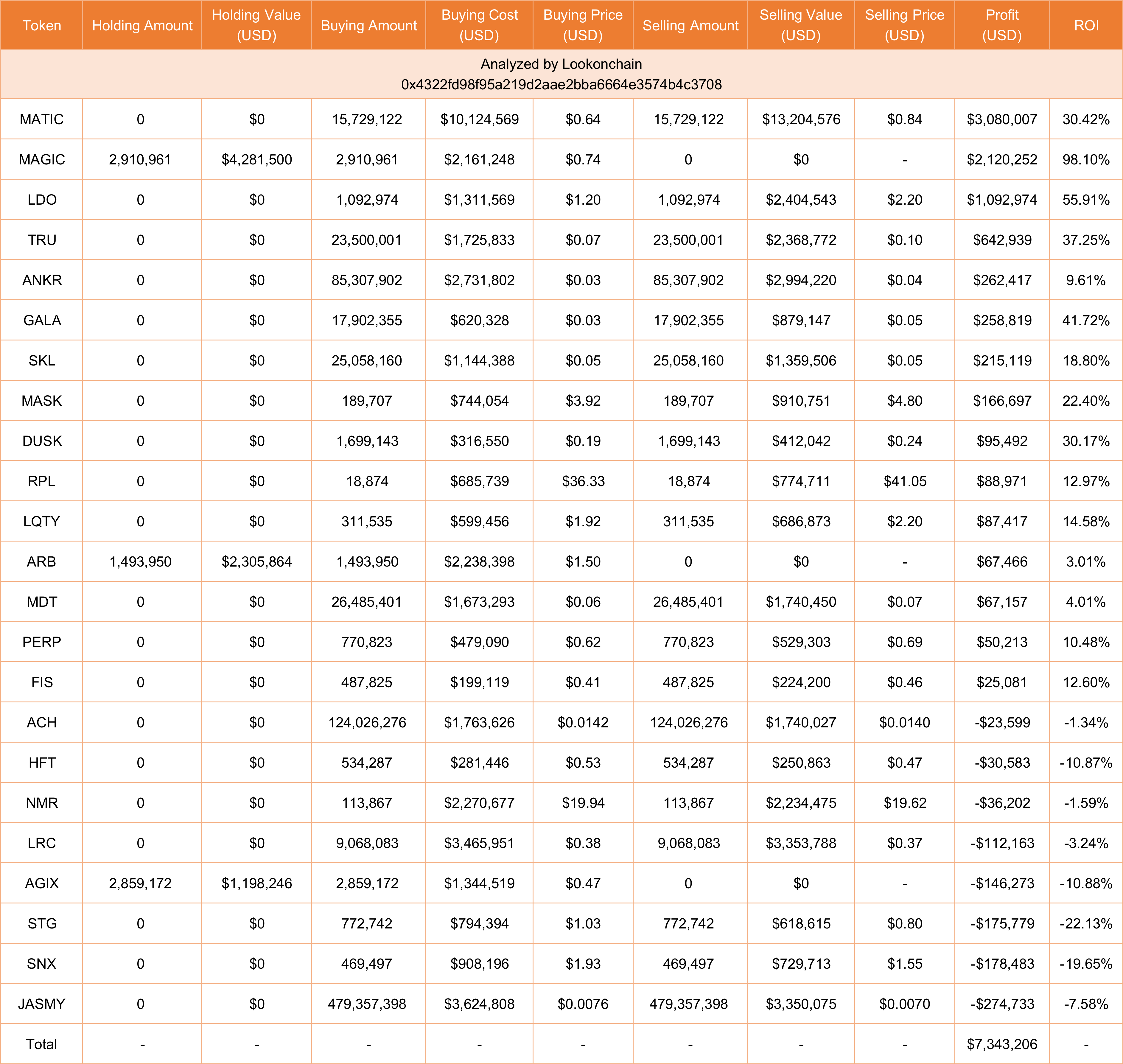 The firm goes on to elaborate more on the high-net-worth investor’s trading history, showing how they profited millions by not only swapping MATIC, but also the token that powers the Treasure Metaverse (MAGIC), crypto staking solution Lido (LDO) and blockchain-based lending platform TrueFi (TRU).