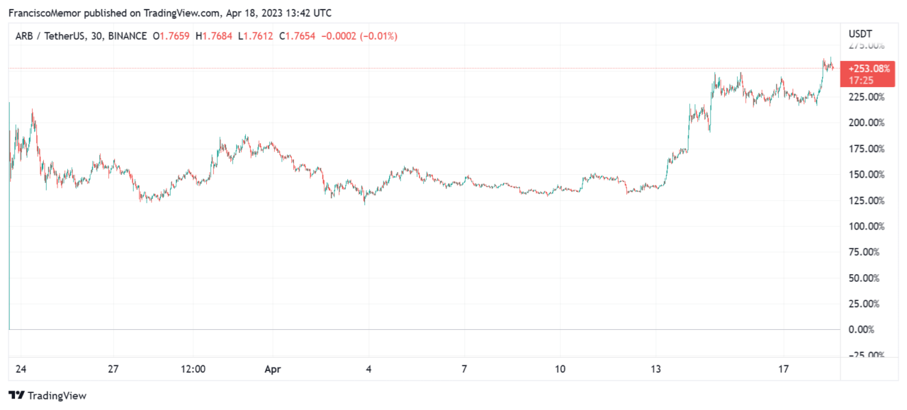 ARB has since kept on rising to now trade at $1.76 per token, which would mean the whale could be making as much as $8 million on the trade if they kept the funds on their Binance wallets for a few more hours.