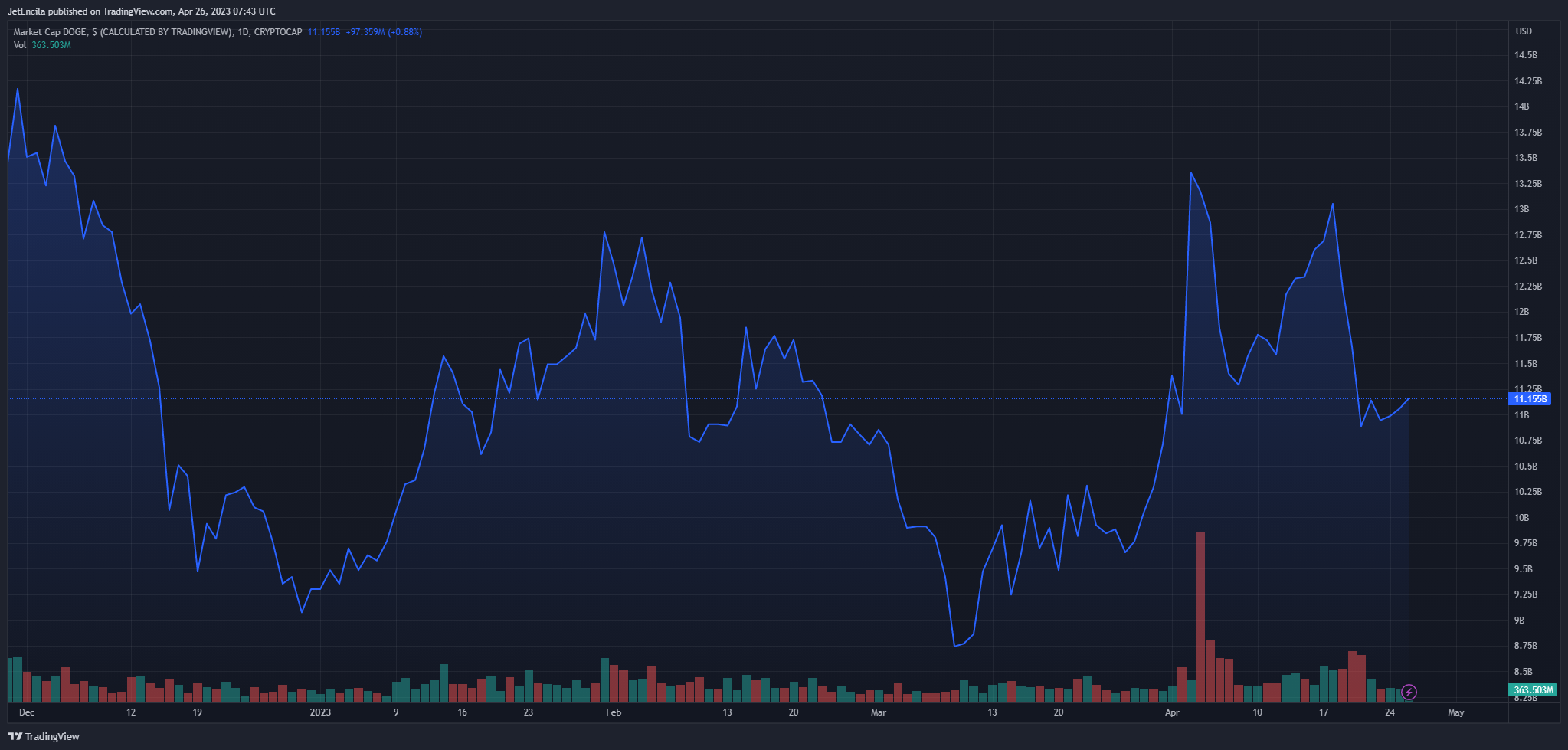 DOGE total market cap currently at $11.1 billion on the daily chart at TradingView.com