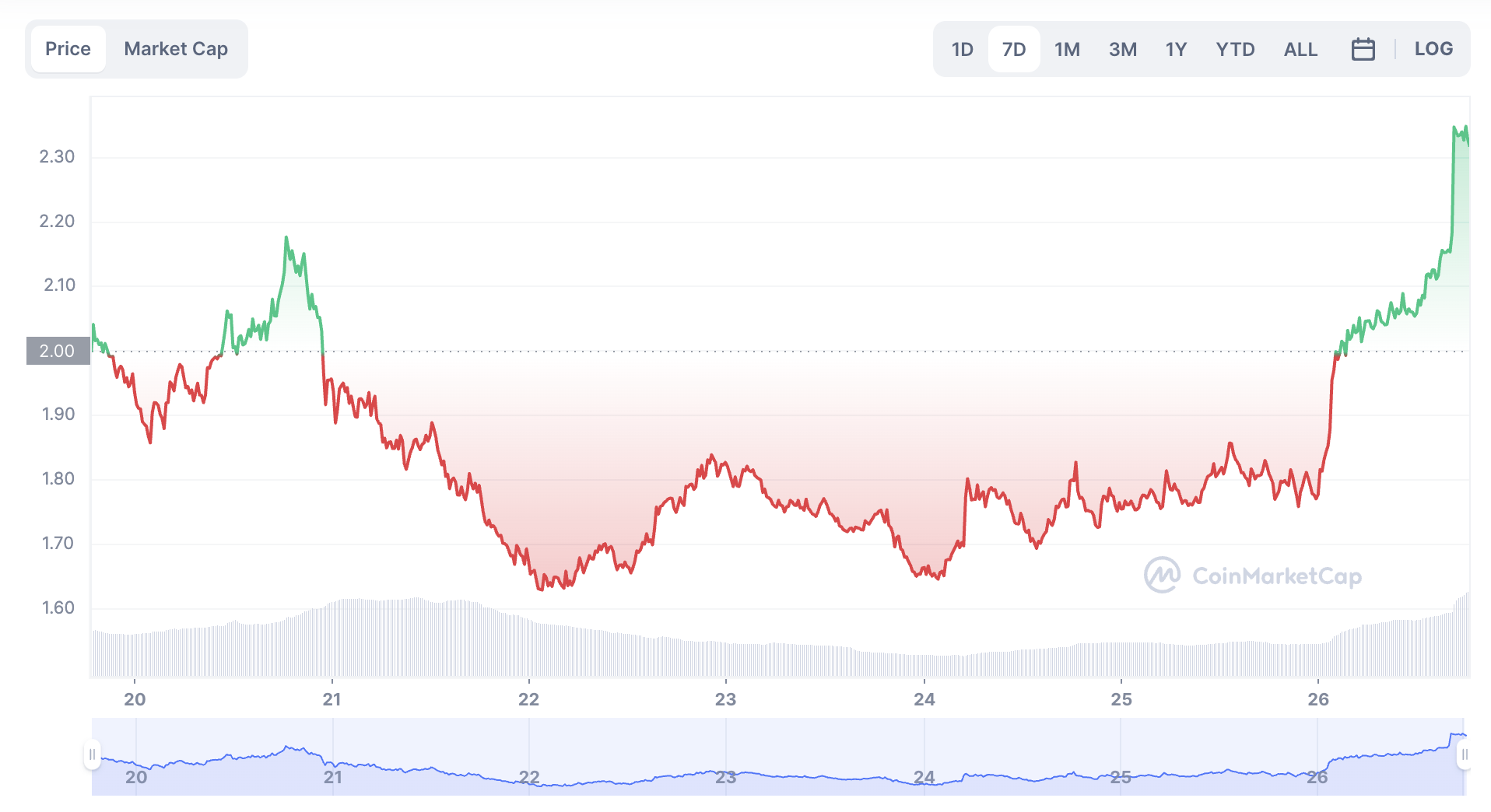 The render is on for a bull run, trading at $2.33 as of press time. The asset ad recorded an increase of close to 30% within 24 hours.