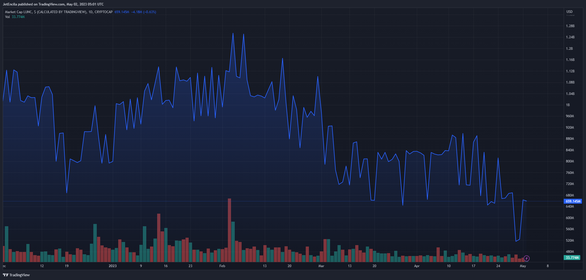 LUNC market cap at $659 billion on the daily chart at TradingView.com