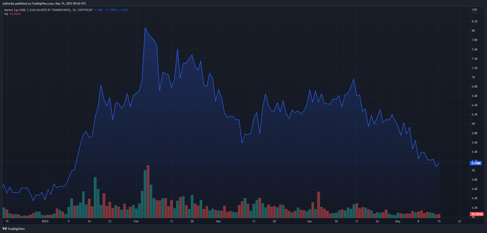 SHIB total market cap at $5.15 billion on the daily chart at TradingView.com