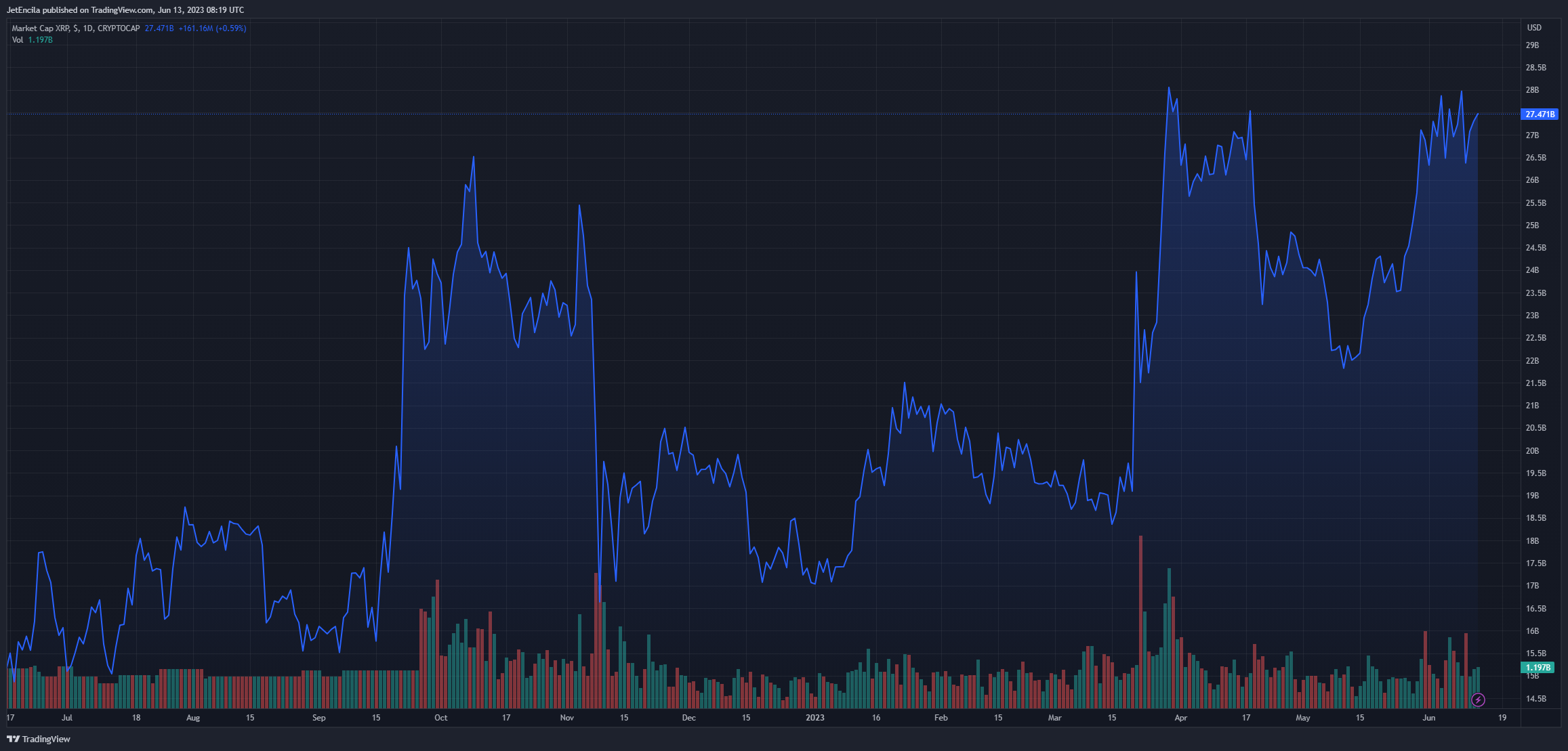 XRP market cap currently at $27 billion. Chart: TradingView.com