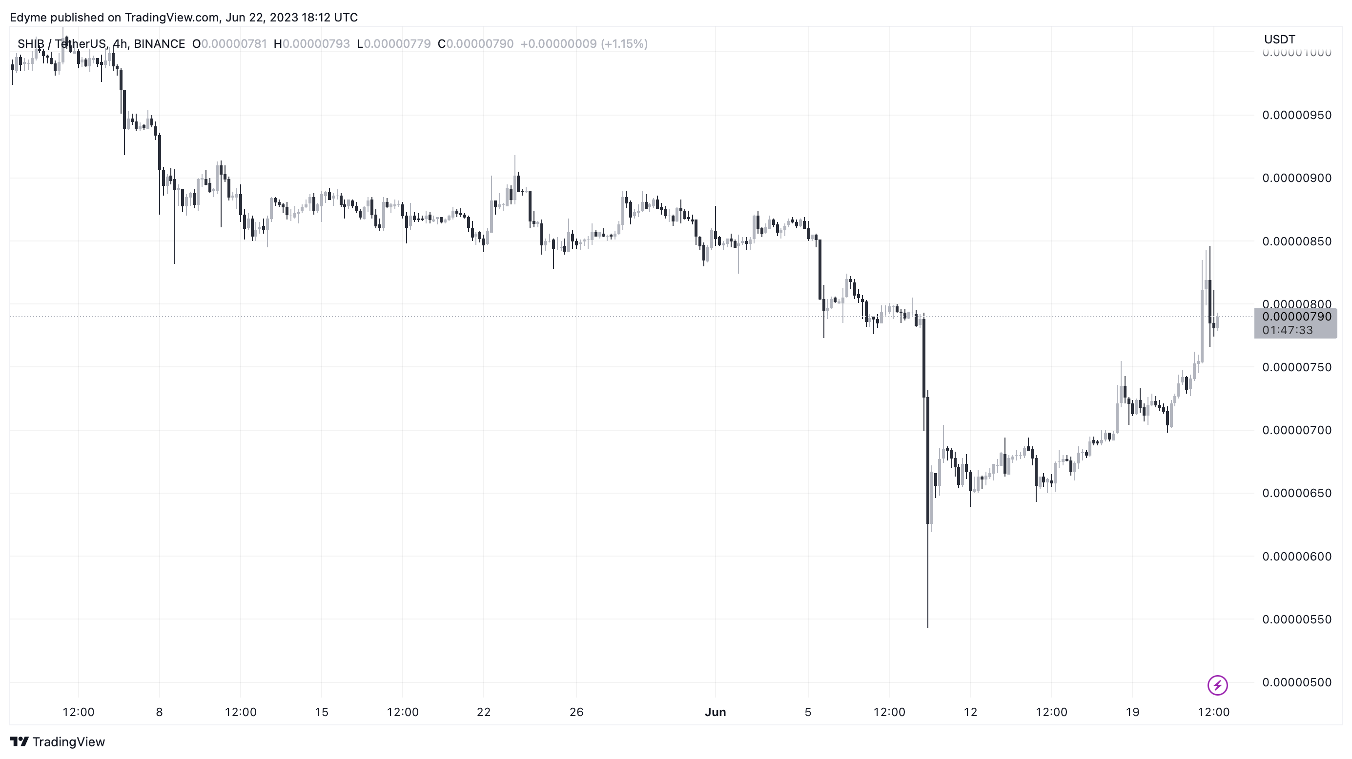 The SHIB token price has increased in the past few days, with the meme coin breaking multiple resistance levels. SHIB is trading at $0.00000791, up 19.6% over the past week. The token currently has a market capitalization of $4.6 billion, making it the 16th largest cryptocurrency by market cap.