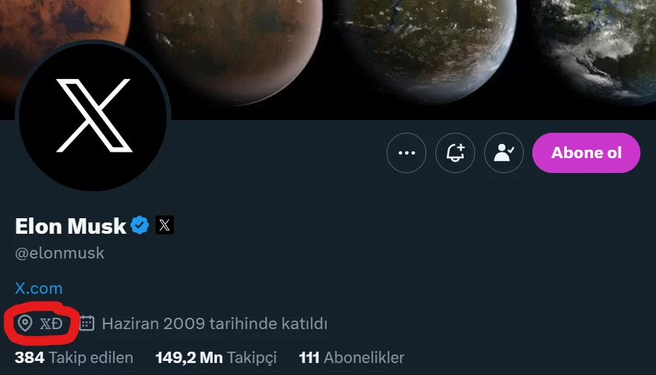 He put the X and the Dogecoin symbol Ð in his Twitter location.