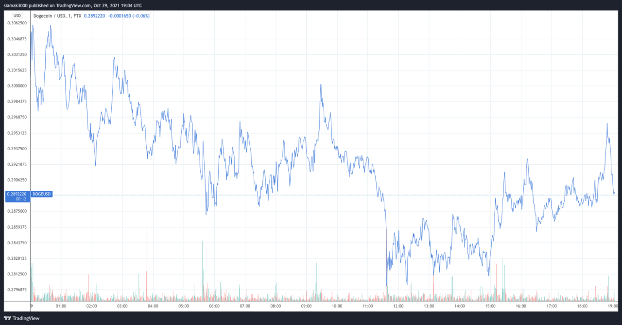 In contrast, on crypto exchange FTX, $DOGE is currently trading at $0.2935, down 4.30% in the past 24 hours.
