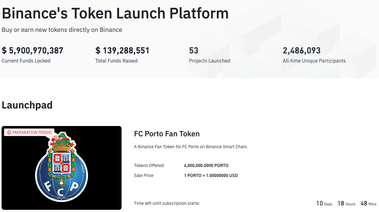 The FC Porto Fan Token ($PORTO) is “a utility token providing fans with revolutionary new ways to engage with their favorite club” and it will be available to Binance users via Binance Launchpad “from today and later via Spot, bank card purchases and P2P.”